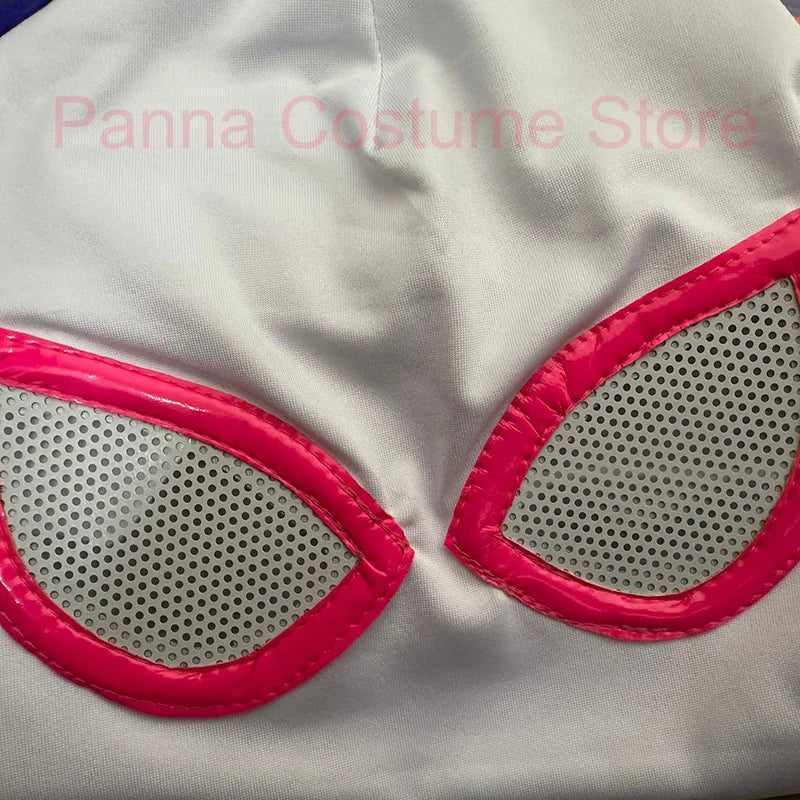 • Inspired by Gwen Stacy’s Ghost Spider design with detailed 3D web patterns and vibrant color accents